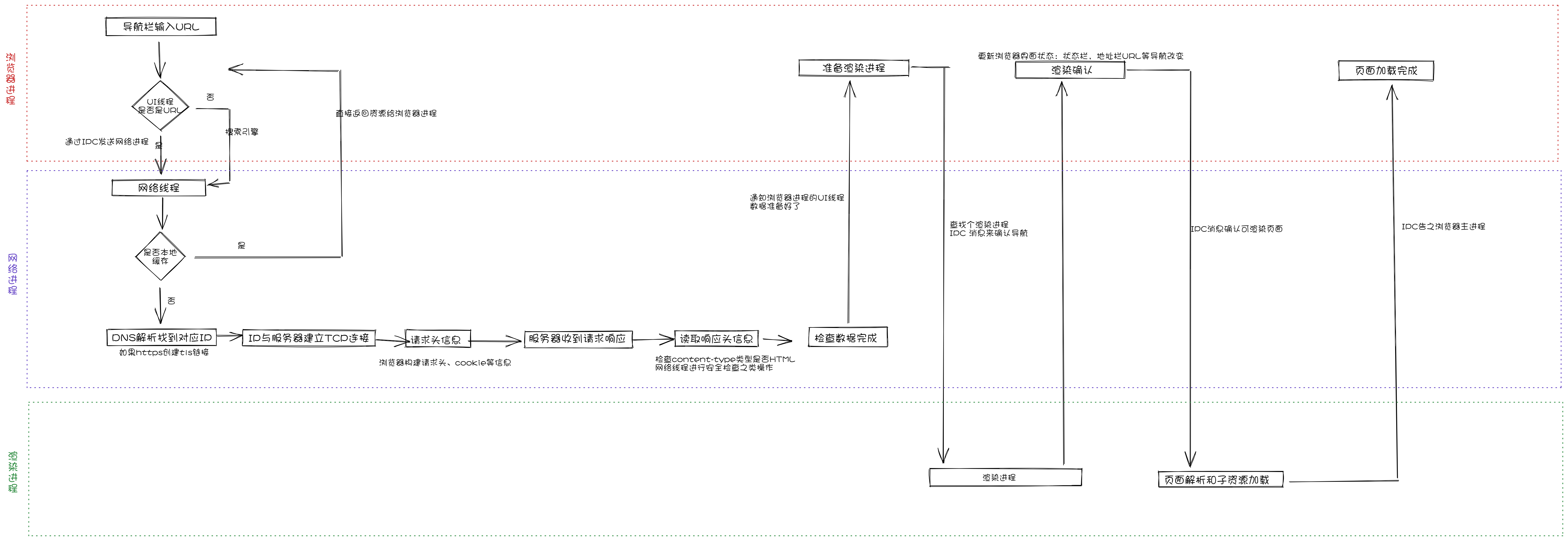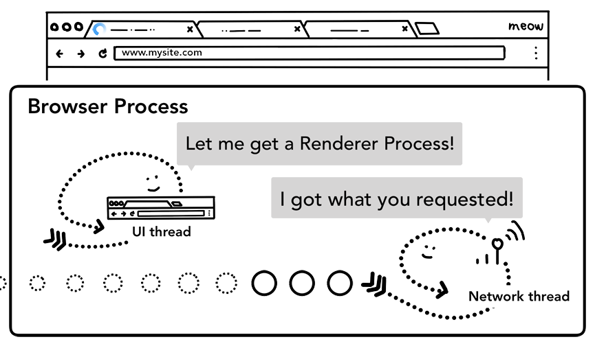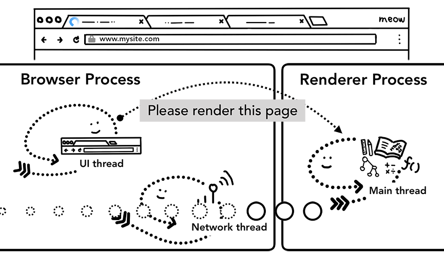 因为网络请求的耗时可能会很⻓, 所以第二步中当UI线程发送URL链接给网络进程后,它其实已经知 晓它们要被导航到哪个站点了。