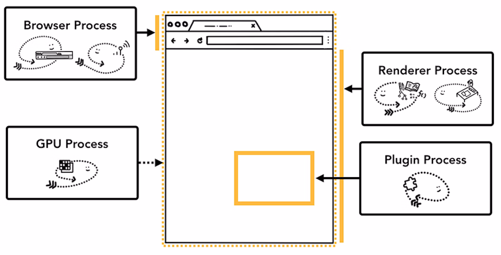 不同进程指向浏览器 UI 的不同部分