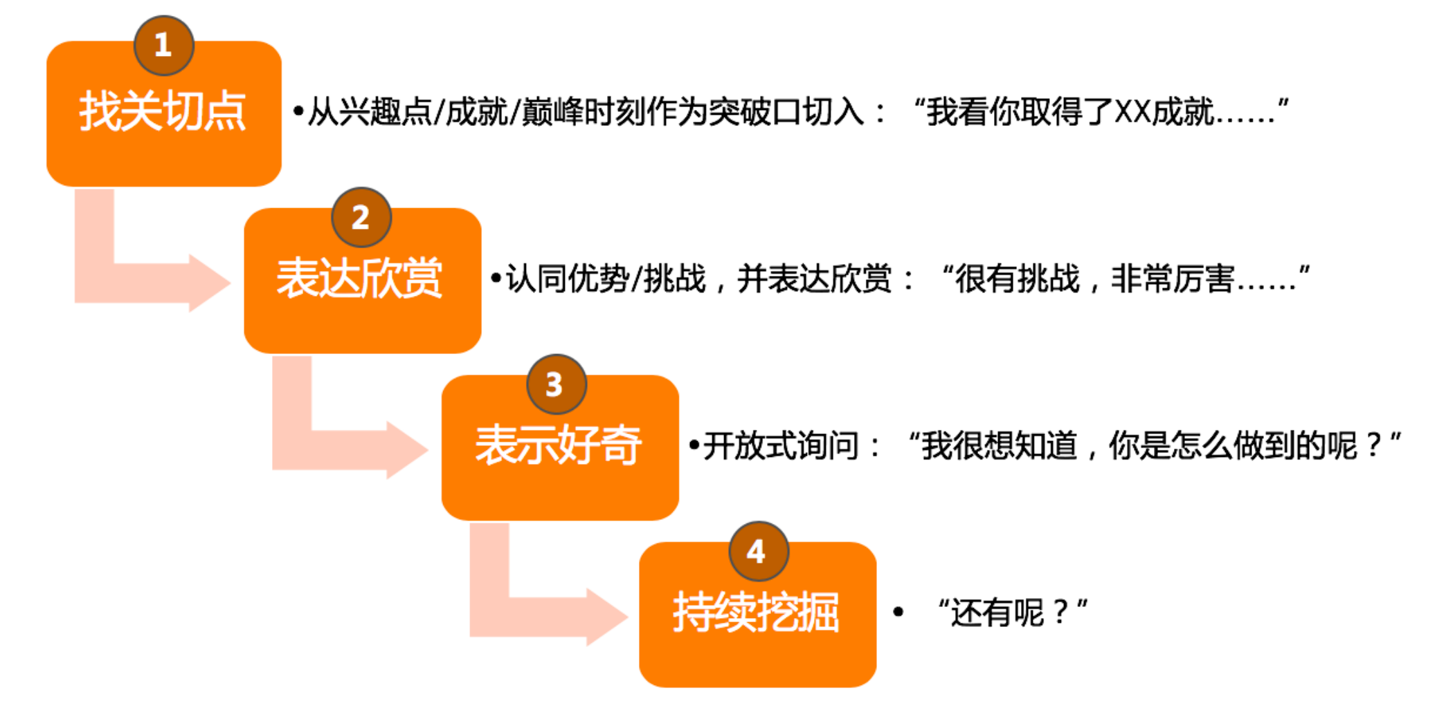 - 从他的“痛点”“痒点”出发,并和他一起制定“迈出第一步”的行动计划