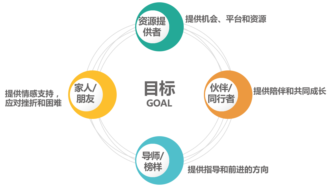 - 第三类,为你提供指导和前进的方向。一般是你的导师、指导人、管理教练或上级